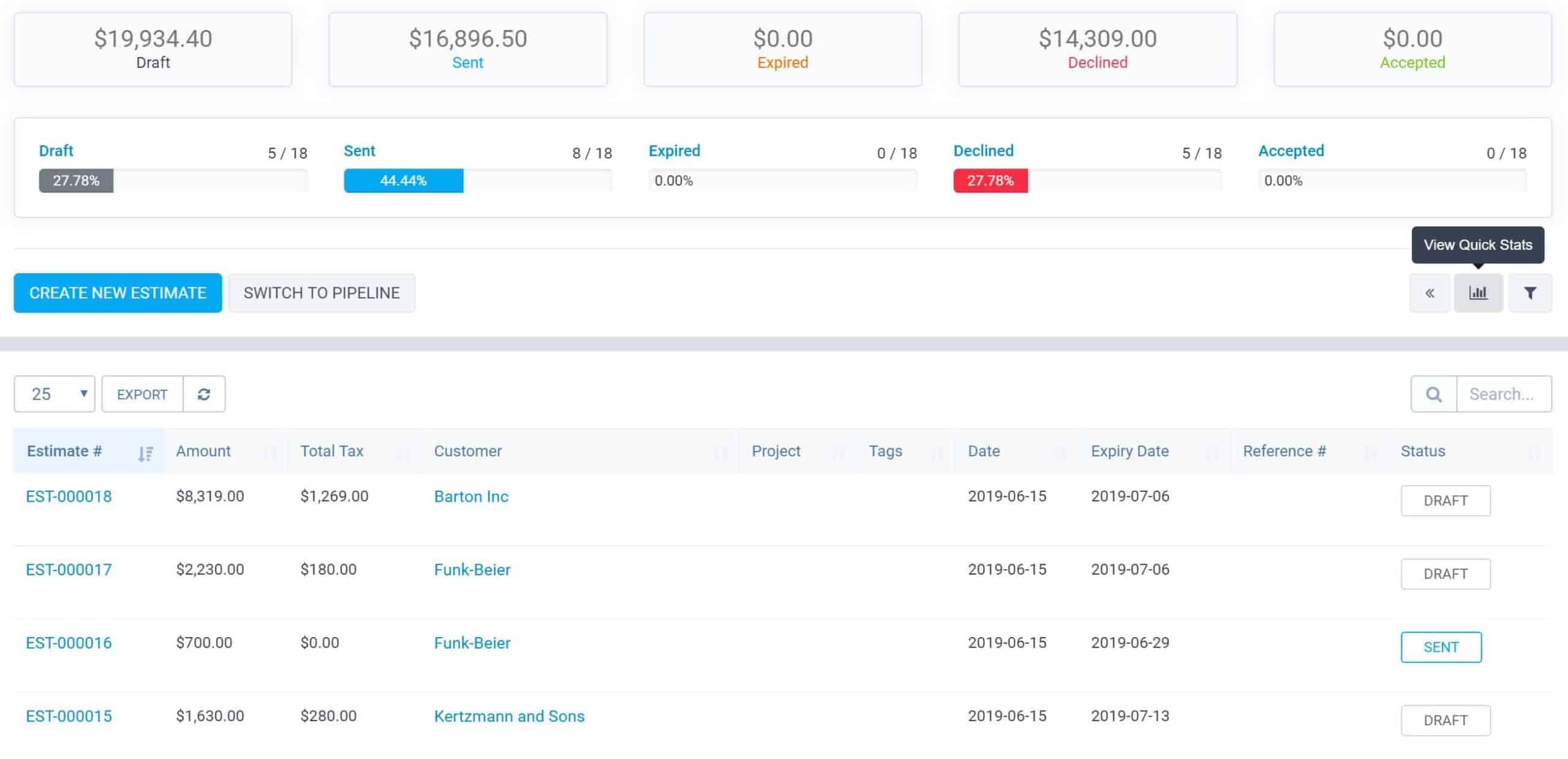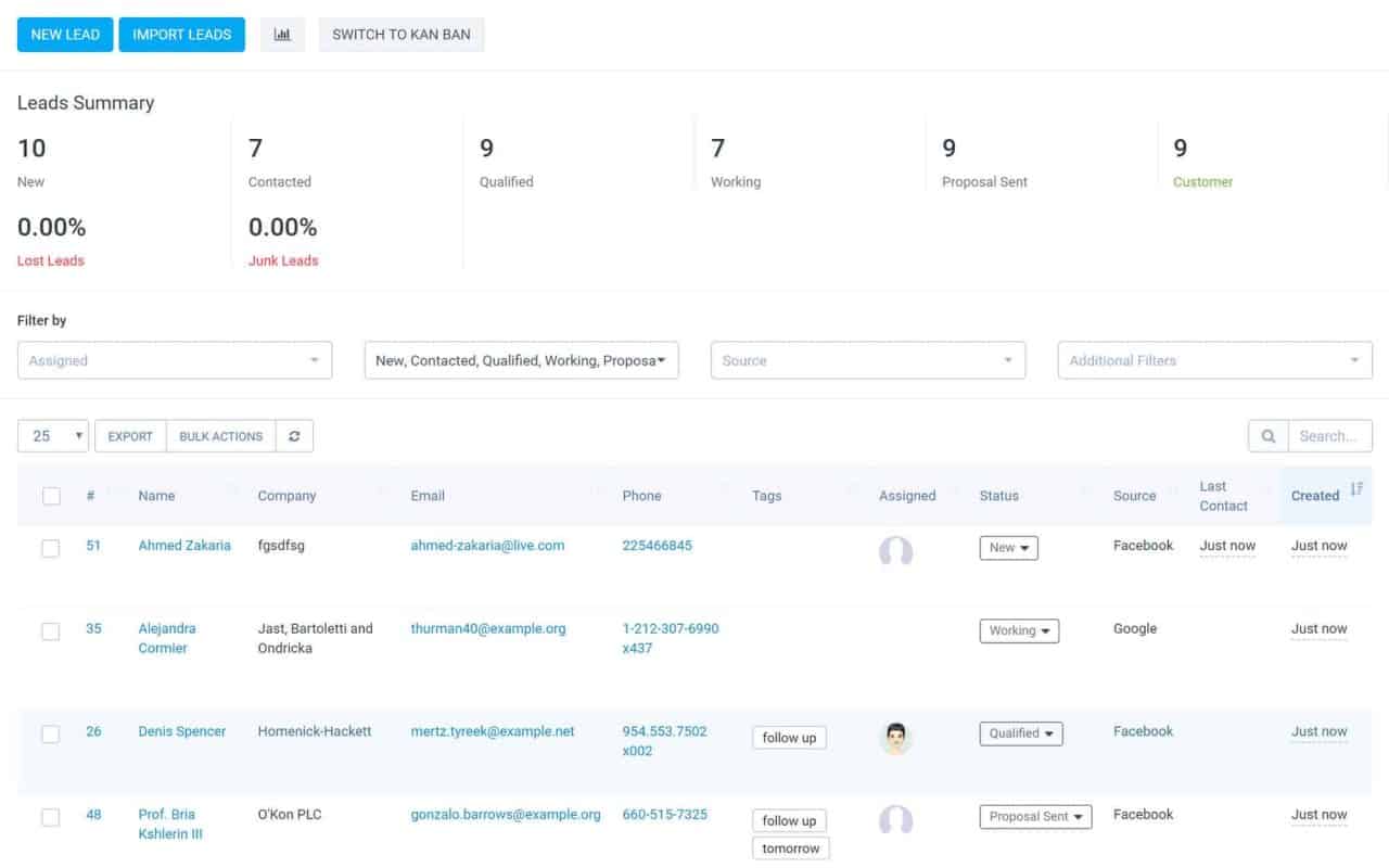 Keep track of leads in one place and easily follow their progress. Ability to auto import leads from email, add notes, create proposals. Organize your leads in stages and change stages easily with drag and drop. Ability to auto import leads from emails and web to lead forms, import leads from .CSV file included.