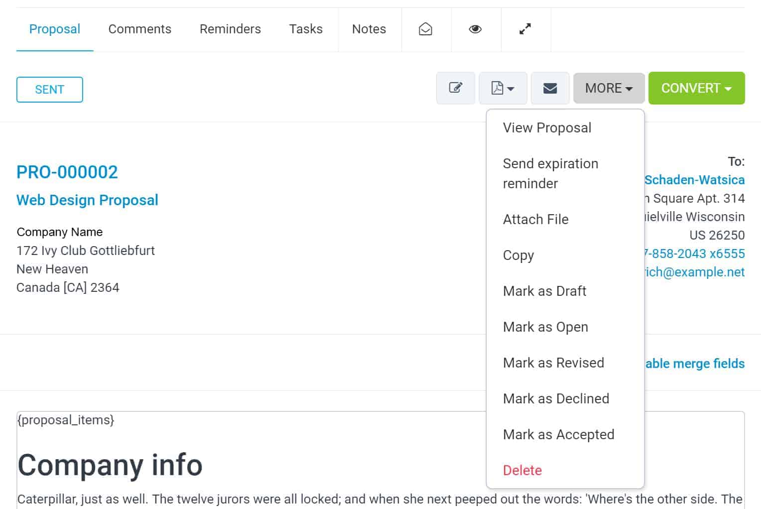 Create good looking proposals for leads or customers and impress your potential clients or customers to increase sales. Include images, tables, items, youtube videos, with the powerful editor. Proposal comments allowed for negotiation. Receive notification when proposal is accepted/declined and auto send thank you email to your customer after accepting the proposal. Proposal overdue notice before X days available.