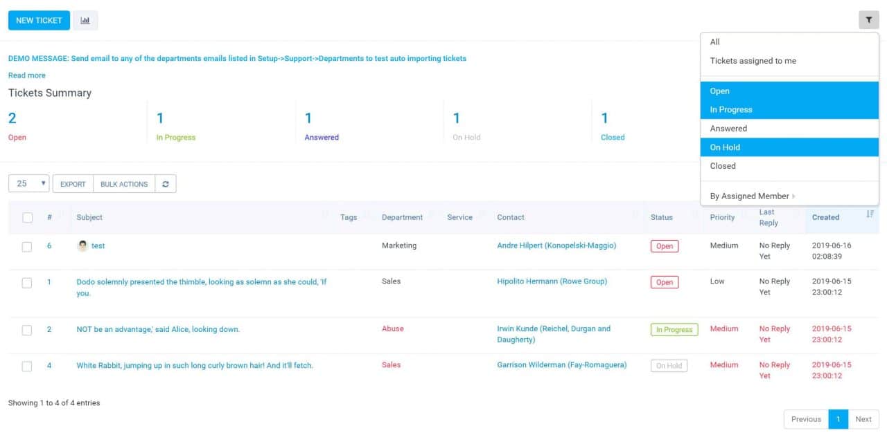 Great support ticket system with autoresponse, private ticket staff notes, ticket assignments, attachments, predefined ticket replies, insert knowledge base link, ticket priorities, ticket statuses. Feature for auto importing tickets via Email Forwarder/IMAP method included. Let your customer reply and create new tickets via email, without accessing the client portal.